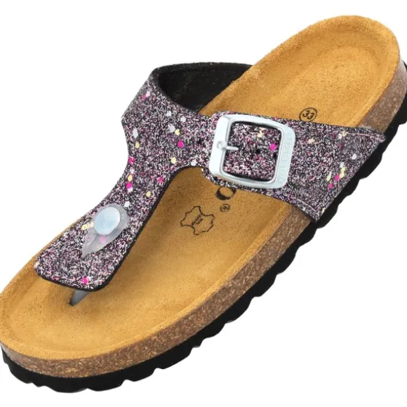 Funkelnde Schritte für kleine Trendsetter mit unseren Palado „Kids Kos G Glitzer“ Zehentrenner-Pantoletten! Hergestellt in Spanien, bieten sie mit ihrer Veloursleder-Decksohle und dem extra weichen Fußbett höchsten Tragekomfort. Die robuste EVA-Laufsohle ist bereit für jedes Abenteuer, während das glitzernde Synthetik-Obermaterial und das hautfreundliche Futter für strahlende Augen sorgen. In diesen Sandalen fühlen sich Kinderfüße rundum wohl!